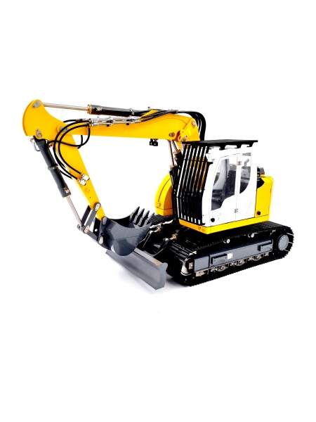 Celokovové hydraulické rypadlo s krátkým ocasem v měřítku 1:14, které je dodáváno jako model ART v originálním provedení s vysílačem 2,4GHz. Kvalitní zpracování ve spojení s kvalitní technikou – tak lze výstižně popsat tento model. Celá konstrukce je vyrobena z kovu. Výložník, stejně jako lopata a žací nůž jsou posouvány hydraulicky, pohon a dokonce i hydraulické čerpadlo jsou poháněny elektricky s bezkomutátorovými motory. To znamená, že je k dispozici dostatek energie pro nadcházející práci. Model lze velmi citlivě ovládat přes dodávaný 2,4 GHz vysílač s Euro ovládáním (přiřazení kniplu jako u skutečného bagru). Všechny modely jsou před dodáním kontrolovány a testovány našimi techniky.