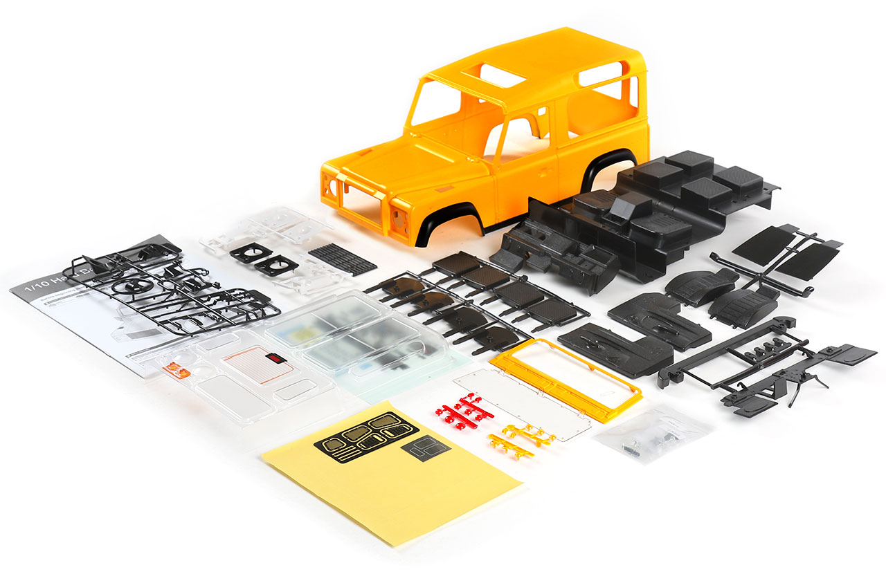 Toto krásné tělo, předem nalakované jasně žlutou barvou a s mnoha detaily, vyzařuje nádech dobrodružství. Vyrobeno z ABS plastu, je robustní a vydrží hodně při drsném každodenním používání. Krátké převisy zaručují perfektní ovladatelnost v terénu.Interiér tvoří vana, ve které jsou upevněna sedadla, boční panely dveří a palubní deska s volantem a polepy přístrojů. To vše má za následek realistický interiér.
