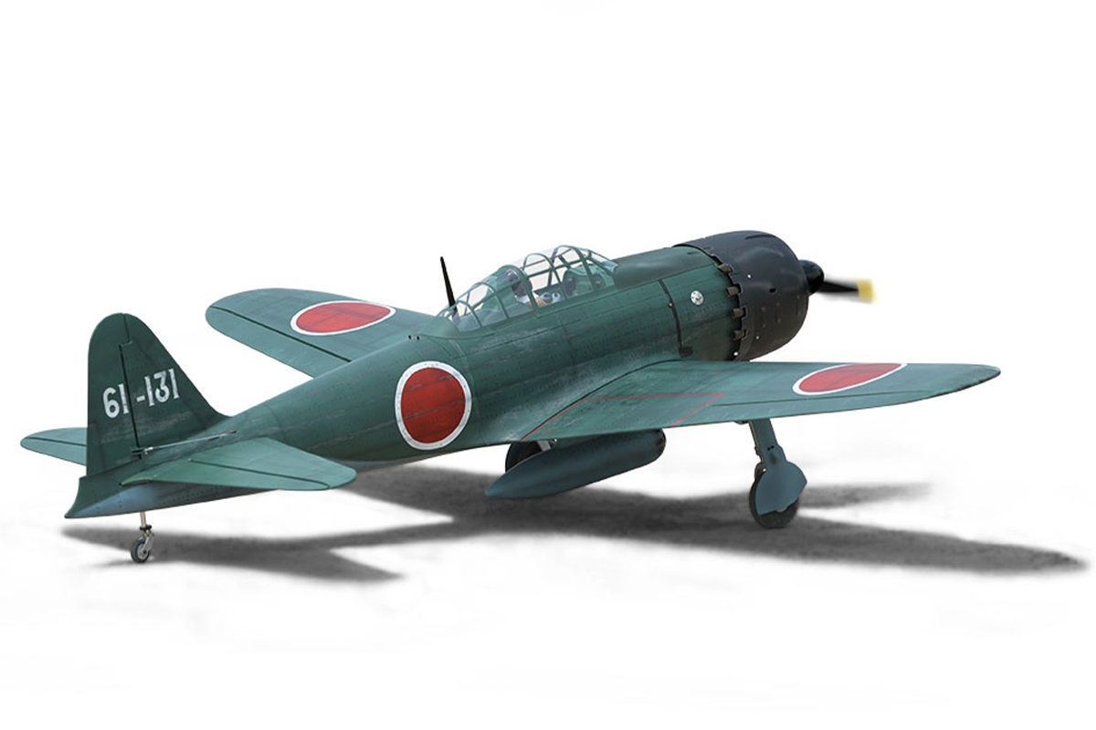 Mitsubishi A6M Zero je přímo synonymem japonského stíhacího letectva druhé světové války. Vynikal vysokou rychlostí, naprosto nedostižnou obratností a stoupavostí, měl silnou výzbroj a obrovský dolet - takže na počátky války zcela deklasoval nezkušené spojenecké protivníky. Jakmile se mu ale do cesty postavili lépe vycvičení piloti v kabinách Hellcatů a Corsairů, rychle vyšly najevo jeho slabiny - malá odolnost lehké konstrukce, chybějící pancéřování kabiny a samosvorné obaly palivových nádrží. Přes průběžnou modernizaci se Zera stala od druhé poloviny roku 1943 lovnou zvěří...