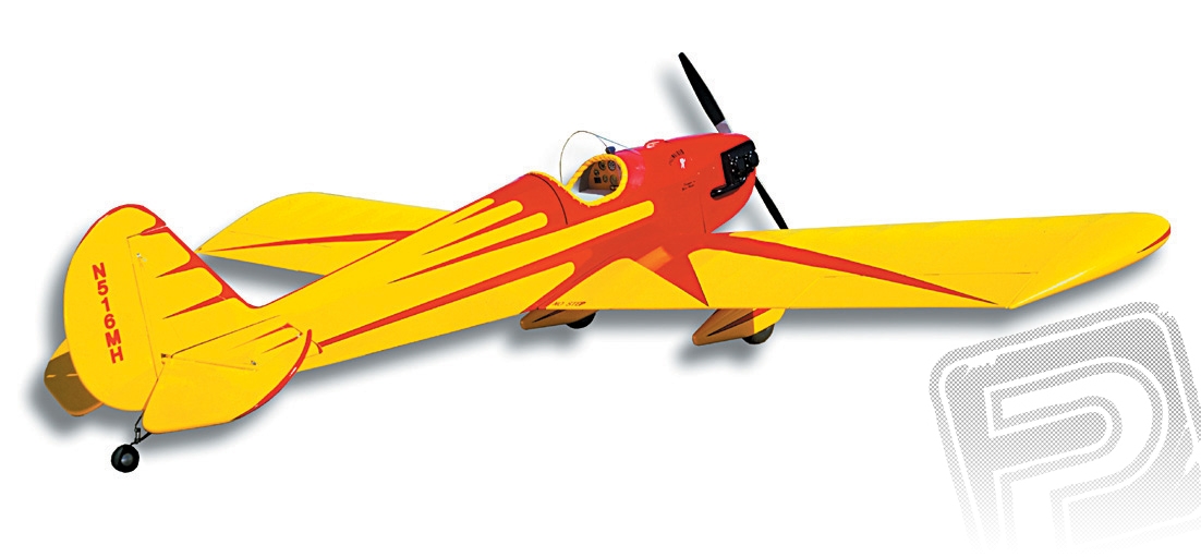 Pro benzínový motor 35-40 ccm nebo velký čtyřtakt 30-50 ccm. Klasická konstrukce z balsy a lehké překližky, třídílné křídlo s duralovými spojkami pro snadnou přepravu, laminátové kryty motoru a kol, maketový podvozek včetně ostruhy, kvalitní příslušenství a aršík samolepek...