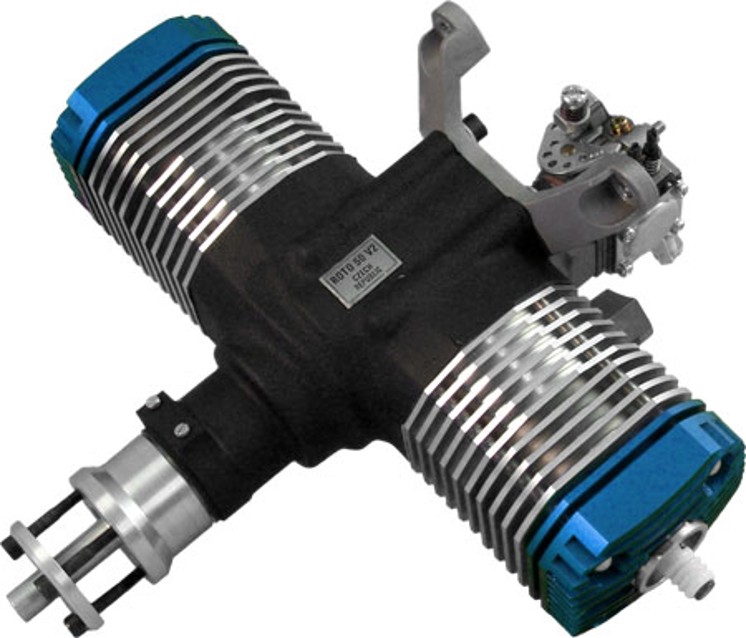 Motor ROTO 50 V2 je dvouválcový dvoudobý benzínový motor vyrobený speciálně pro modely letadel do 3,2 m (10,5 ') a 16 kg (35,3 lb). Tato data jsou určena pro rekreační létání.
