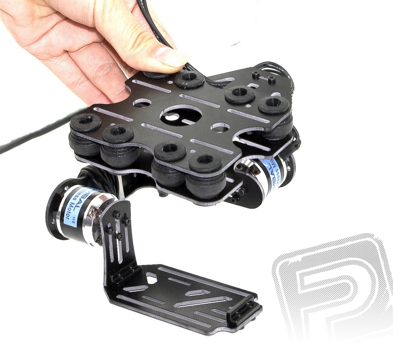 Stavebnice dvouosého stabilizovaného závěsu kamery Go Pro z laminátových dílů s řídící elektronikou s gyro senzorem a dvojicí střídavých motorů. Sada je určena pro zkušené elektroniky s praxí s programováním jednodeskových mikrokontrolérů Arduino – není to hotový výrobek ve stylu „připojit dva konektory a letět“, ale výborný základ pro experimentování hloubavého pilota multikoptér. Pokud ale netušíte, co znamenají slova Arduino, Atmega, Open source nebo PID regulátor, měli byste se poohlédnout po něčem hotovém, již připraveném k provozu.