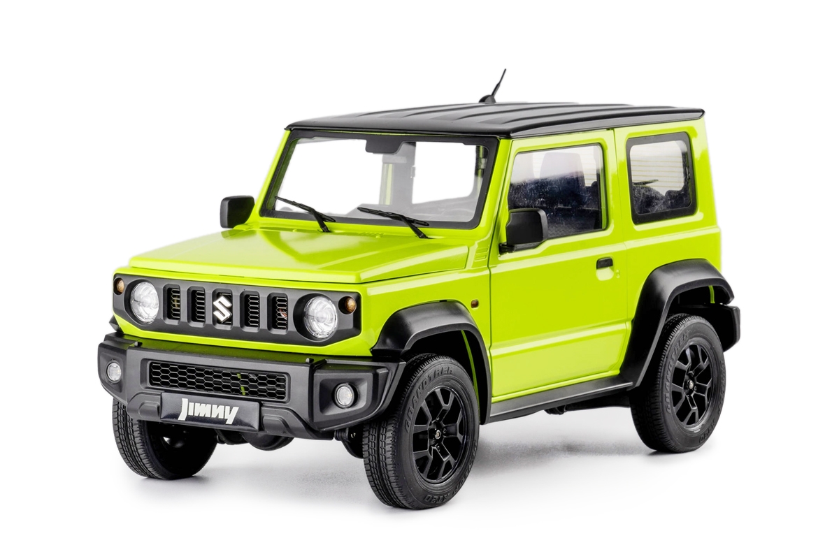 Dvanáctinový model terénního vozu Suzuki Jimny vsází na věrohodnost. Úchvatně zpracovaný exteriér věrohodně kopíruje křivky jeho reálné předlohy. Kapota lakována originálním odstínem je doplněna fotoleptanými „nerezovými“ detaily masky, galvanicky pokovenými logy Suzuki a světlomety, nebo gumovými pneumatikami Grandtrek. Součástí těla modelu jsou i sklopná zpětná zrcátka, stěrače, nebo snímatelné nárazníky umožňující vlastní úpravy.