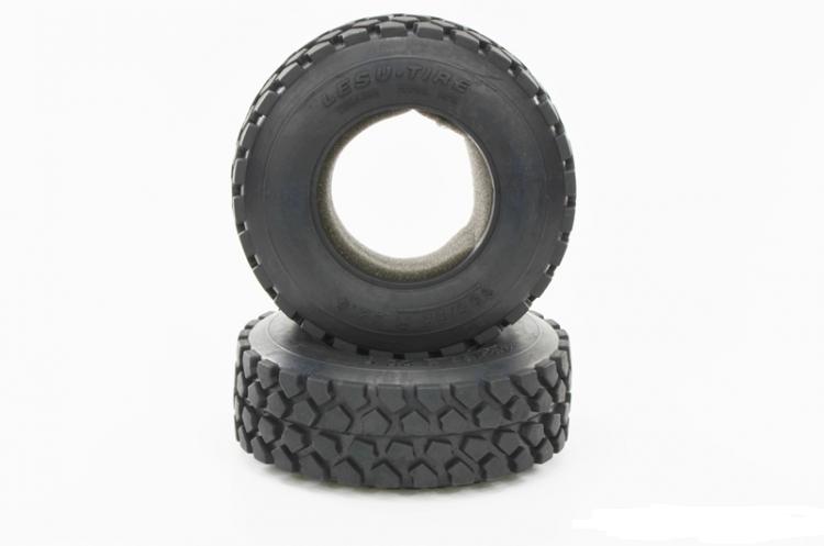 Široké pneumatiky s profilem terénu a pěnovou vložkou pro nákladní vozidla Tamiya v 1:14.